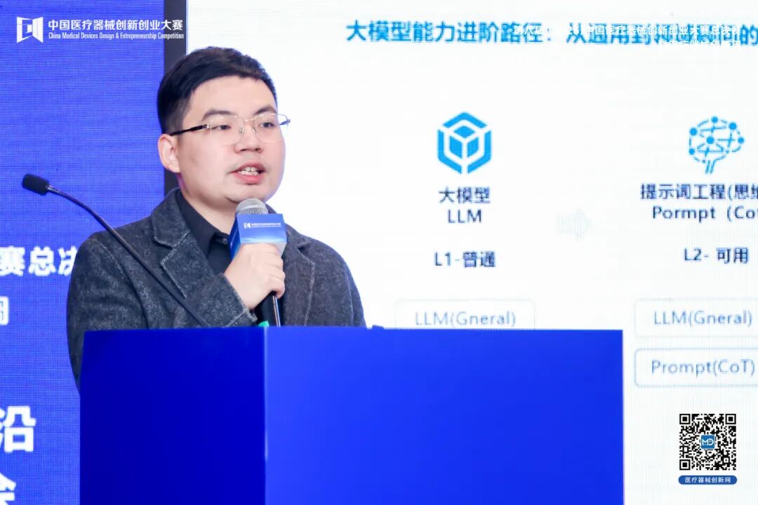 国家医疗器械产业技术创新联盟、医疗器械创新网网运营总监戴婷,分享了AI医疗器械现状、挑战及未来趋势。她介绍,平台依托“一网+一赛”资源,联合近400家创服机构,为AI医疗企业提供从研发立项、临床验证、注册申报到融资招商的全链条服务,已累计服务超4000个创新项目。